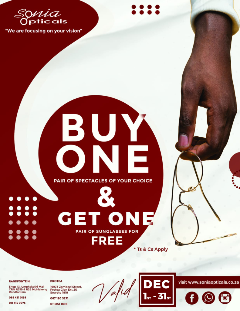 Sonia Opticals is an eye care service practice that was founded by a young black and passionate optometrist Sonia Shivambu. Our practice is in the residential area where we are sharing and practice with a General Practitioner. It is accessible for our patients and our services are up to standard. In the past 2 years we managed to hire 3 Optometric staff, Optometrist, Receptionist and a cleaner.